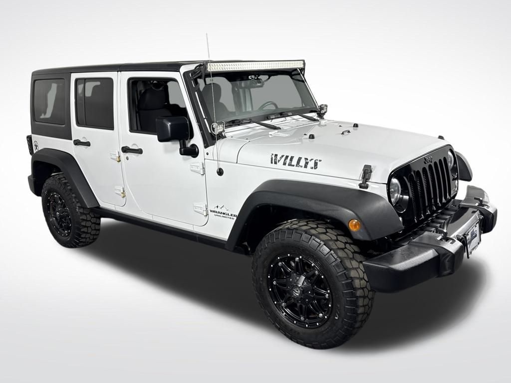 1-Yr SiriusXM Radio Service, 16" x 7.0" Luxury Styled Steel Wheels, 4-Wheel Disc Brakes, 4-Wheel Drive Swing Gate Decal, 8 Speakers, ABS brakes, Air Conditioning, AM/FM radio, Anti-Spin Differential Rear Axle, Auto-Dimming Mirror w/Reading Lamp, Black 3-Piece Hard Top, Black Jeep Grille Badge, Brake assist, CD player, Cloth Seats w/Adjustable Head Restraints, Compass, Connectivity Group, Deep Tint Sunscreen Windows, Delete Sunrider Soft Top, Driver door bin, Driver vanity mirror, Dual front impact airbags, Electronic Stability Control, Freedom Panel Storage Bag, Front 1-Touch Down Power Windows, Front anti-roll bar, Front Bucket Seats, Front Center Armrest w/Storage, Front fog lights, Integrated roll-over protection, Jeep Trail Rated Kit, Low tire pressure warning, Manufacturer's Statement of Origin, MOPAR Slush Mats, Normal Duty Suspension, Occupant sensing airbag, Outside temperature display, Passenger door bin, Passenger vanity mirror, Performance Suspension, Power Convenience Group, Power Heated Mirrors, Power Locks, Power steering, Quick Order Package 24W Willys Wheeler, Radio: 130, Radio: 430, Rear anti-roll bar, Rear Passenger Assist Handles Kit, Rear Window Defroster, Rear Window Wiper/Washer, Remote Keyless Entry, Remote USB Port, Security Alarm, SIRIUS Satellite Radio, Speed control, Split folding rear seat, Steering wheel mounted audio controls, Tachometer, Tilt steering wheel, Tire Pressure Monitoring Display, Traction control, Trip computer, Uconnect Voice Command w/Bluetooth, Variably intermittent wipers, Vehicle Information Center, Wheels: 17" x 7.5" High Gloss Black Willys, Willys Hood Decal, Willys Wheeler Grille, Willys Wheeler Package.