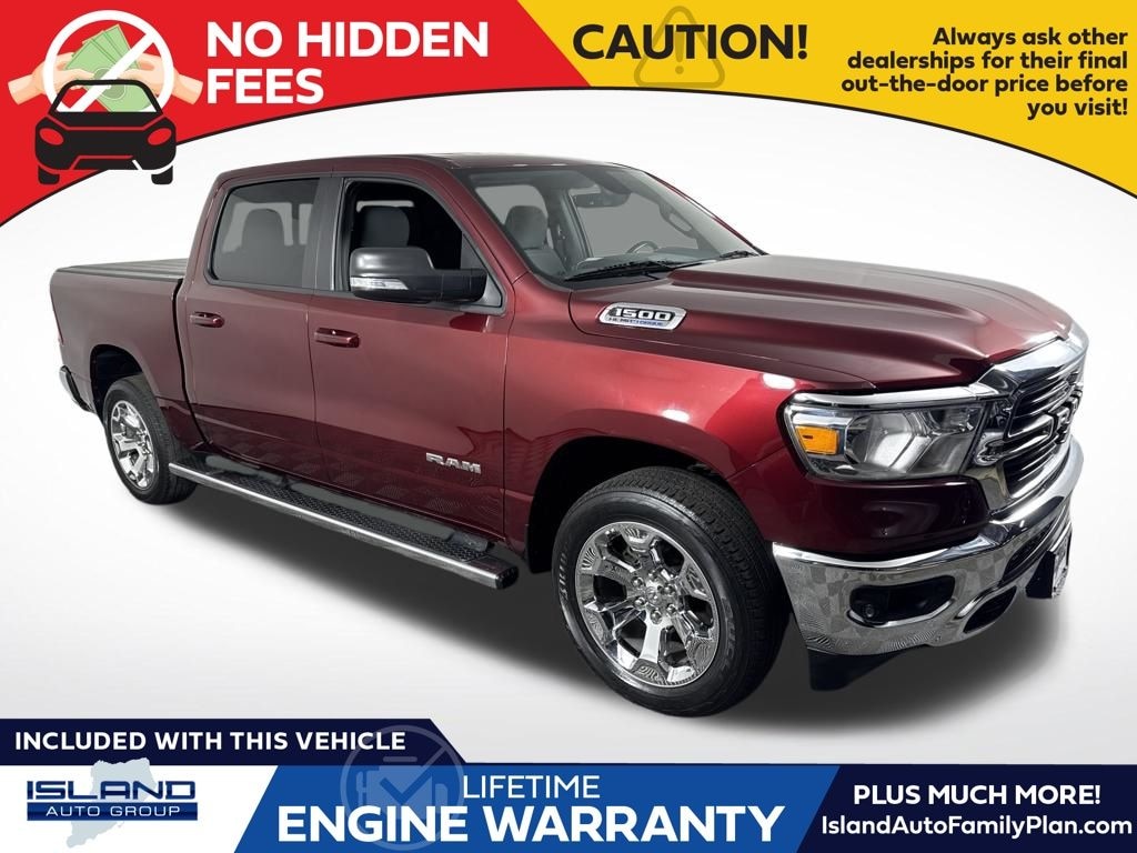 115V Auxiliary Power Outlet, 3 Rear Seat Head Restraints, 3.21 Rear Axle Ratio, 4 Way Front Headrests, 4-Wheel Disc Brakes, 40/20/40 Split Bench Seat, 400W Inverter, 48V Belt Starter Generator, 6 Speakers, ABS brakes, Air Conditioning, Alloy wheels, AM/FM radio, Bed Utility Group, Big Horn Level 2 Equipment Group, Black Exterior Mirrors, Brake assist, Bumpers: chrome, Cloth Bench Seat, Compass, Delay-off headlights, Driver door bin, Dual front impact airbags, Dual front side impact airbags, Electronic Stability Control, Front anti-roll bar, Front Center Armrest w/Storage, Front fog lights, Front License Plate Bracket, Front reading lights, Front Seat Back Map Pockets, Front wheel independent suspension, Fully automatic headlights, GPS Antenna Input, Heated door mirrors, Illuminated entry, Integrated Voice Command w/Bluetooth, Leather steering wheel, Low tire pressure warning, Manufacturer's Statement of Origin, MOPAR Front & Rear Rubber Floor Mats, MOPAR Spray In Bedliner, Occupant sensing airbag, Outside temperature display, Overhead airbag, Overhead console, Panic alarm, ParkSense Front/Rear Park Assist w/Stop, ParkView Rear Back-Up Camera, Passenger door bin, Passenger vanity mirror, Pick-Up Box Lighting, Power door mirrors, Power steering, Power windows, Quick Order Package 27Z Big Horn, Radio data system, Radio: Uconnect 3 w/5" Display, Radio: Uconnect 4 w/8.4" Display, Rear 60/40 Folding Seat, Rear anti-roll bar, Rear seat center armrest, Rear step bumper, Remote keyless entry, Remote Start System, Speed control, Split folding rear seat, Steering wheel mounted audio controls, Tachometer, Telescoping steering wheel, Tilt steering wheel, Traction control, Trip computer, Variably intermittent wipers, Voltmeter, Wheel to Wheel Side Steps, Wheels: 18" x 8" Cast-Aluminum Painted, Wheels: 20" x 9" Aluminum Chrome Clad (WRK).
